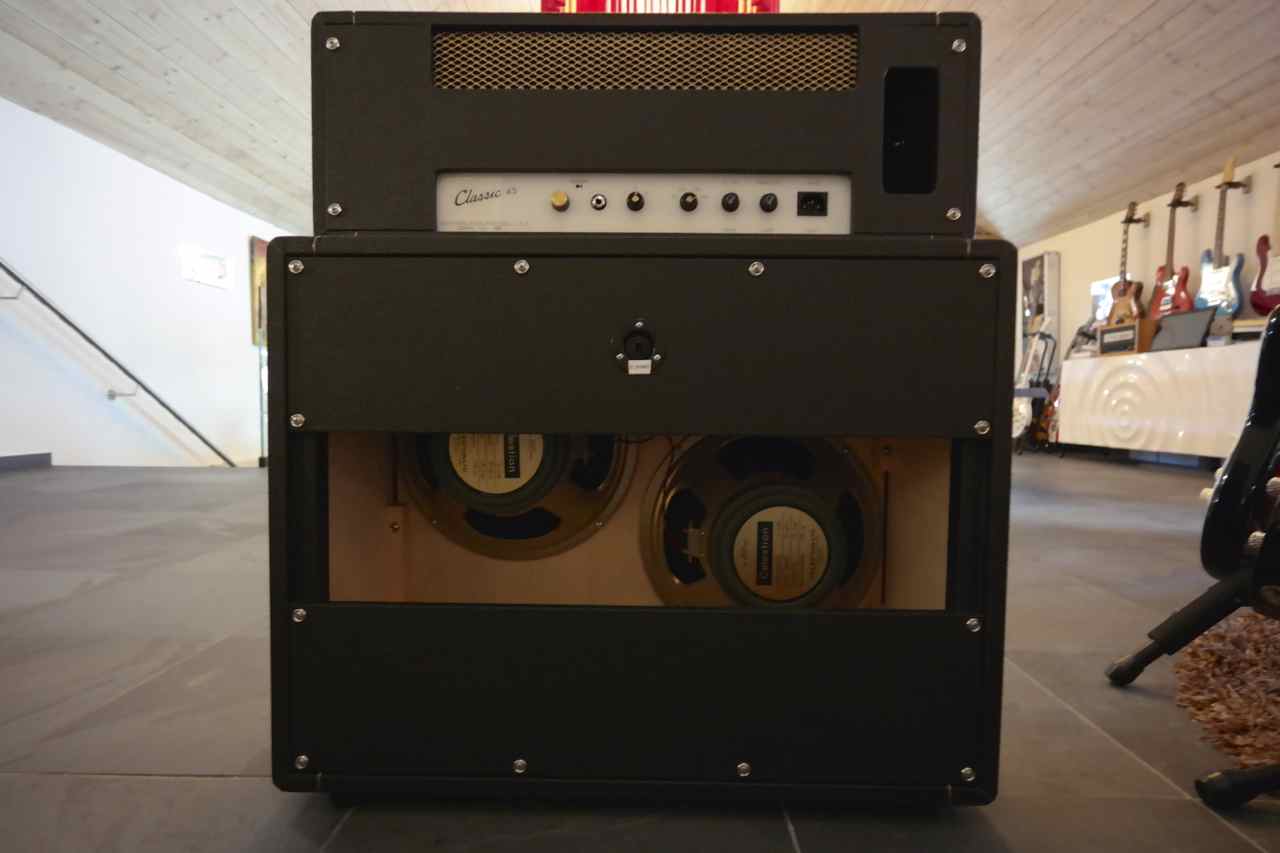 Our demo head is coupled with a 2 x 12 cabinet with Celestion Heritage G12M.