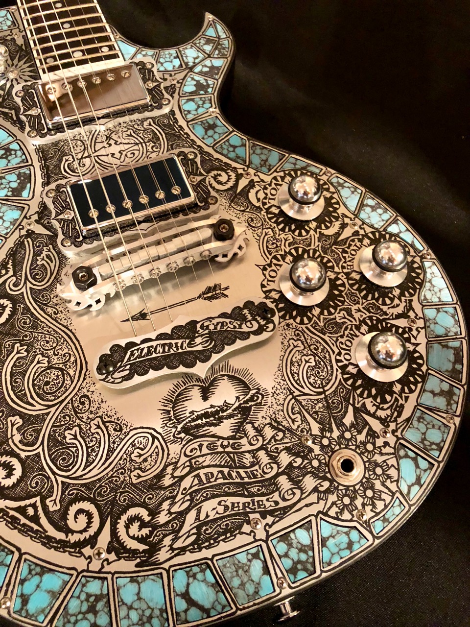 These guitars have the total Super-E-series La India™, La Mora™ and La Canastera™ vibe at roughly two-thirds of the price. The turquoise, coral and ebony mosaics are no longer embedded in a separate mosaic-channel, but are now incorporated into the front of the guitar.