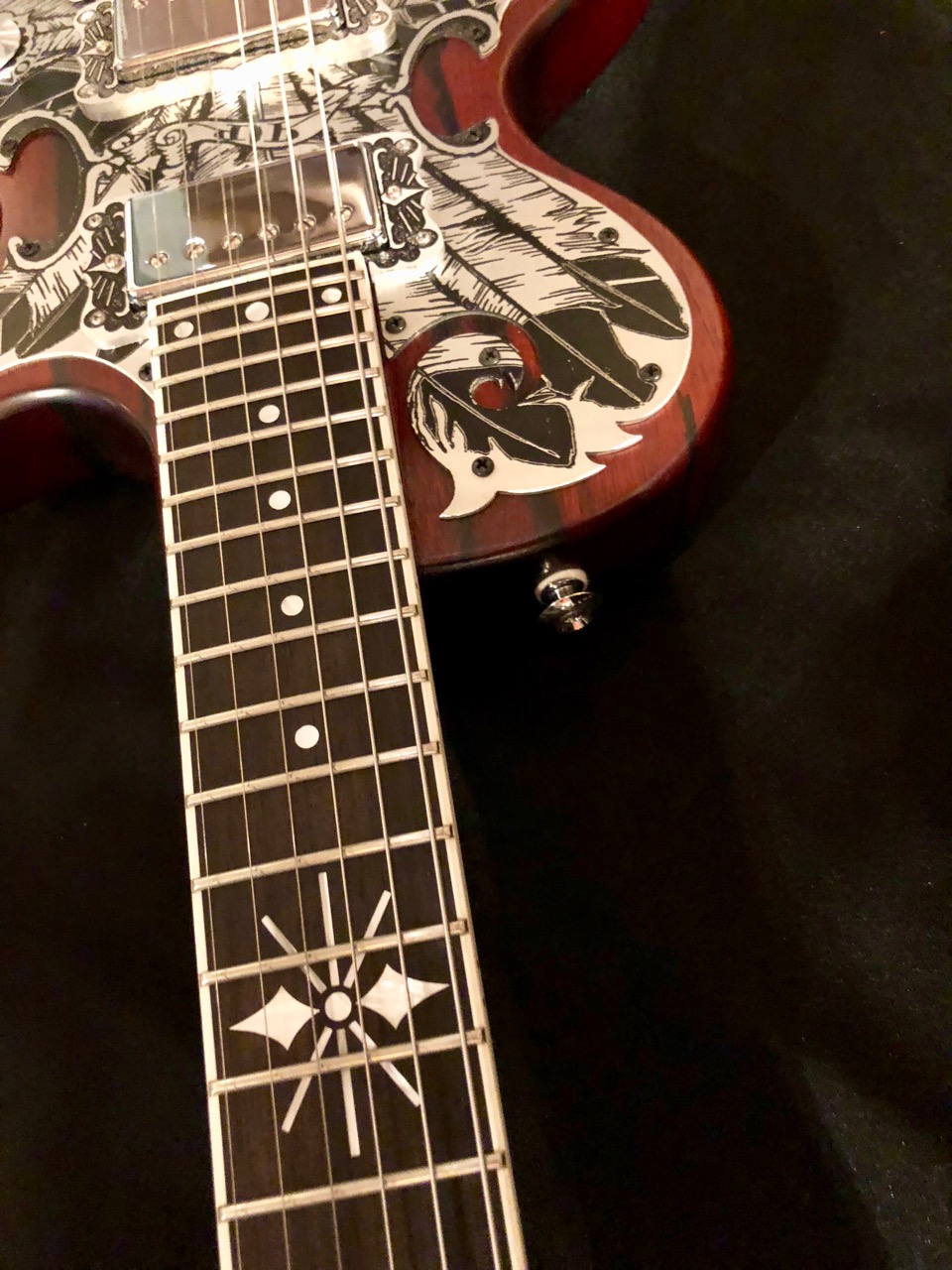 Rich Robinson and his fellow Black Crowes members have formed the Magpie Salute band, which is currently on tour. This signature guitar is a collaboration between Rich and Teye Guitars. Rich has been a longtime Teye player and this guitar includes his artwork.