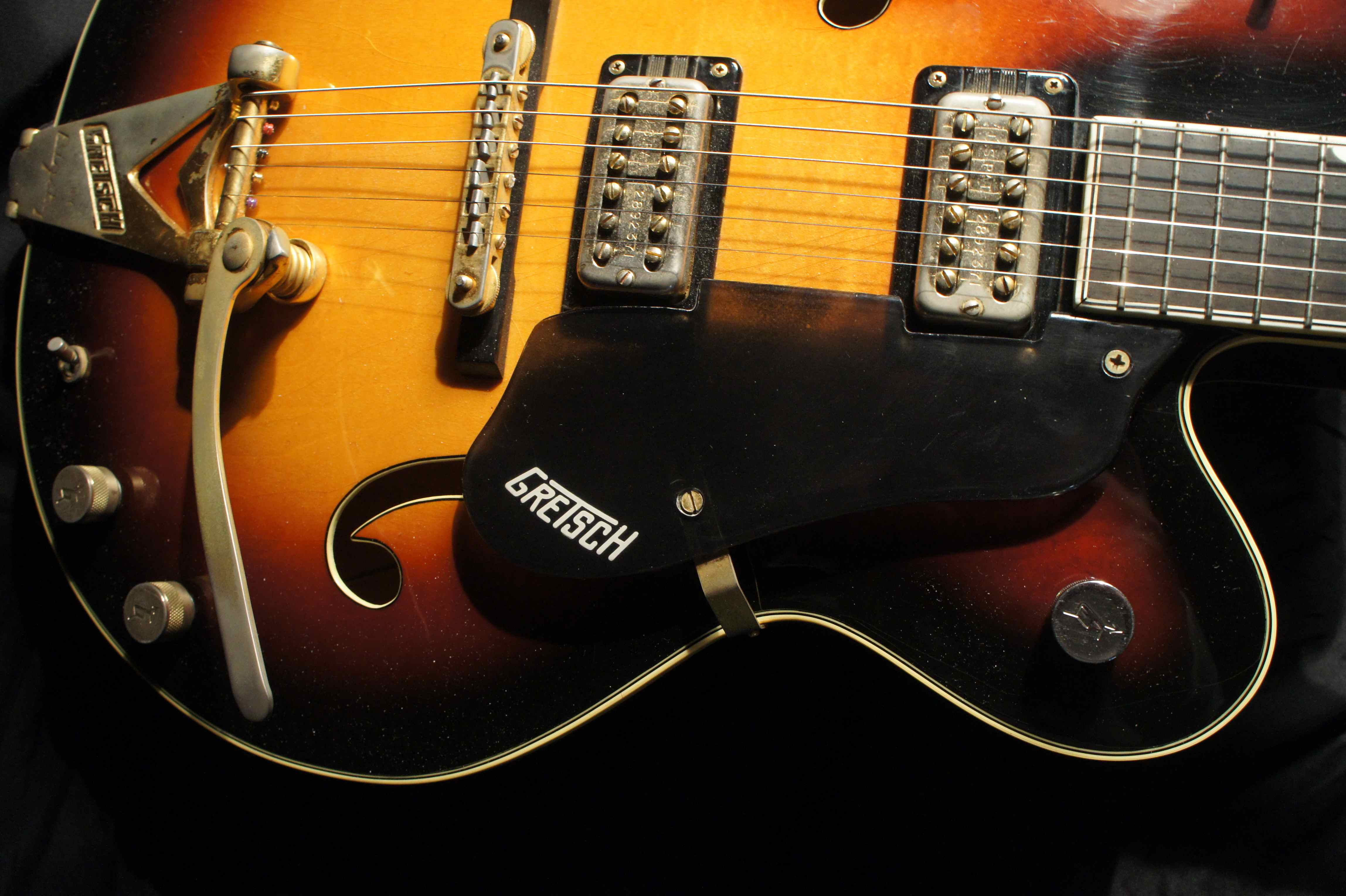 Starting in 1958 FilterTron pickups replaced DeArmonds, along with other changes corresponding with the rest of the Gretsch range, including the addition of the tone switch in place of the previous knob. Stereo models were also offered, under model numbers 6101, ‘02 and ‘03, but they were never popular. The earliest, ‘58 and ‘59 stereo models are easily identified by their close-spaced pickups.