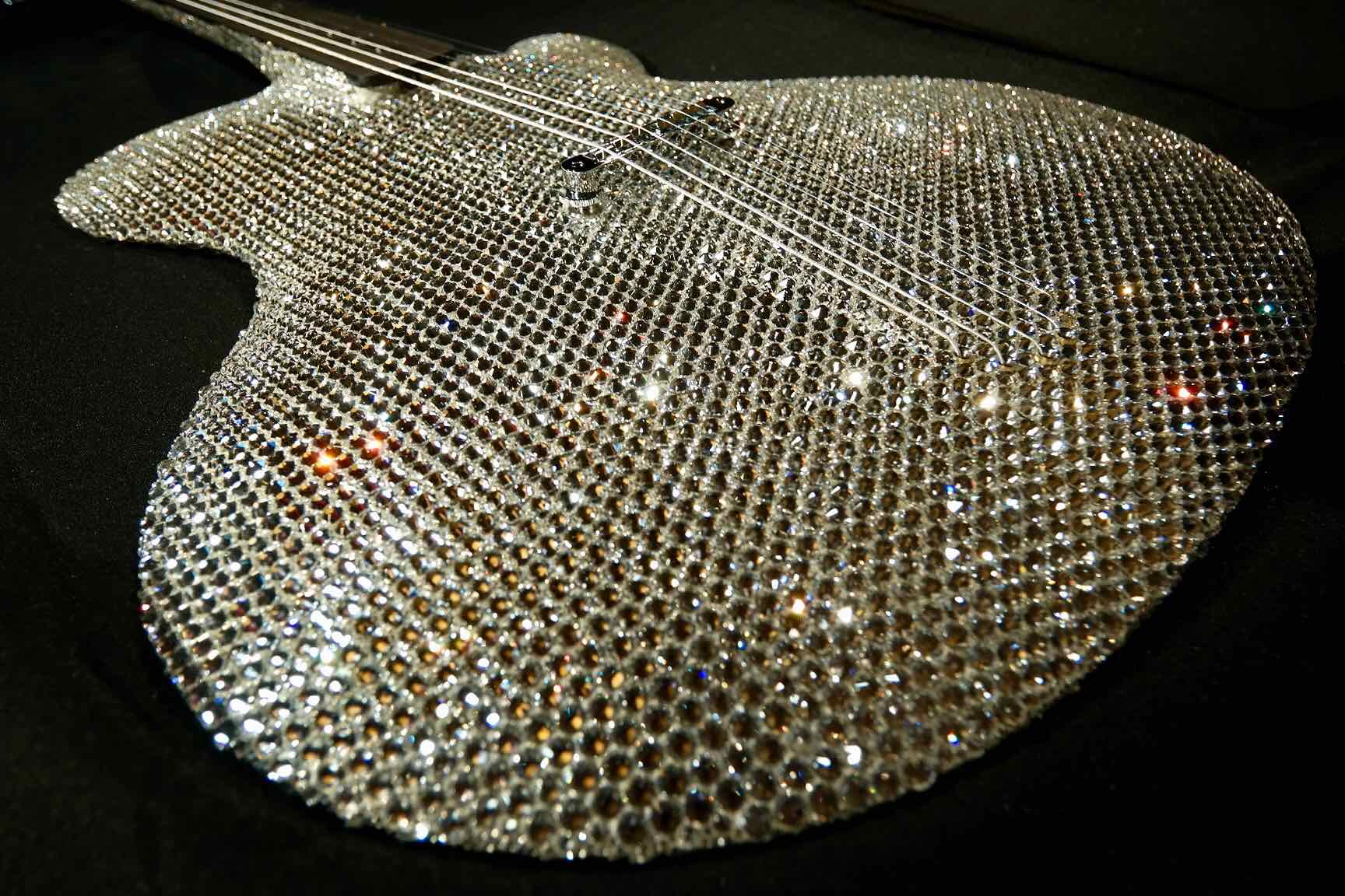But Jens is more than a luthier, he is an artist. He initiates regularly around the guitar artistic projects. One of those projects is "The Stage". This is an installation made by Jens Ritter at the MPK Museum in Kaiserslautern, Germany in 2015. It consists of a slow rotating Princess Isabella Guitar covered with approximately 11000 Swarovski Crystals and illuminated by colour changing lights.