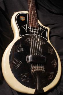 Exactly who in the Dopyera family has not been clarified, but it seems that one of probably Ed Dopyera's sons thought they should produce something for the younger generation - and a Les Paul shaped National "Reso Phonic" was the answer!