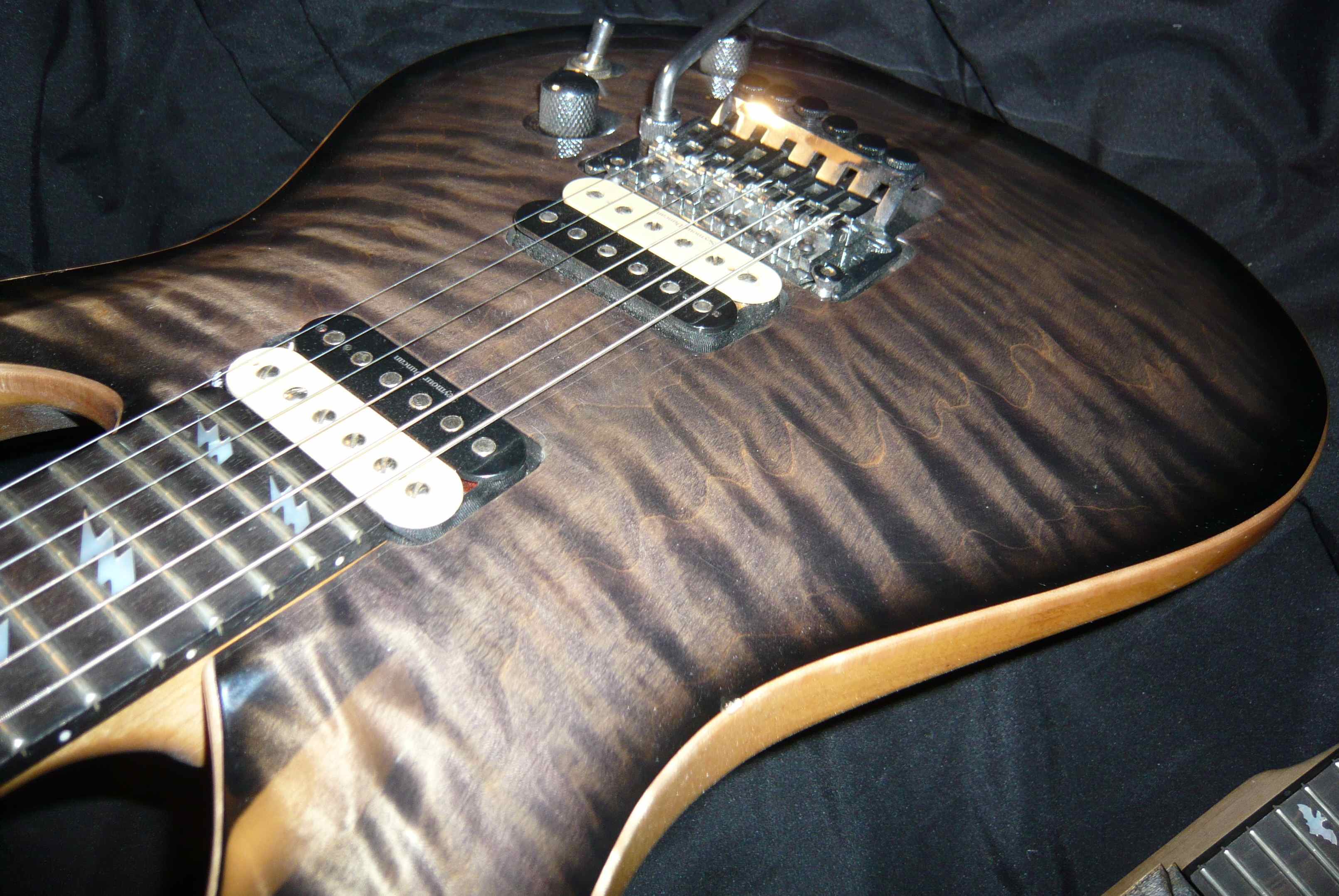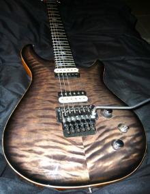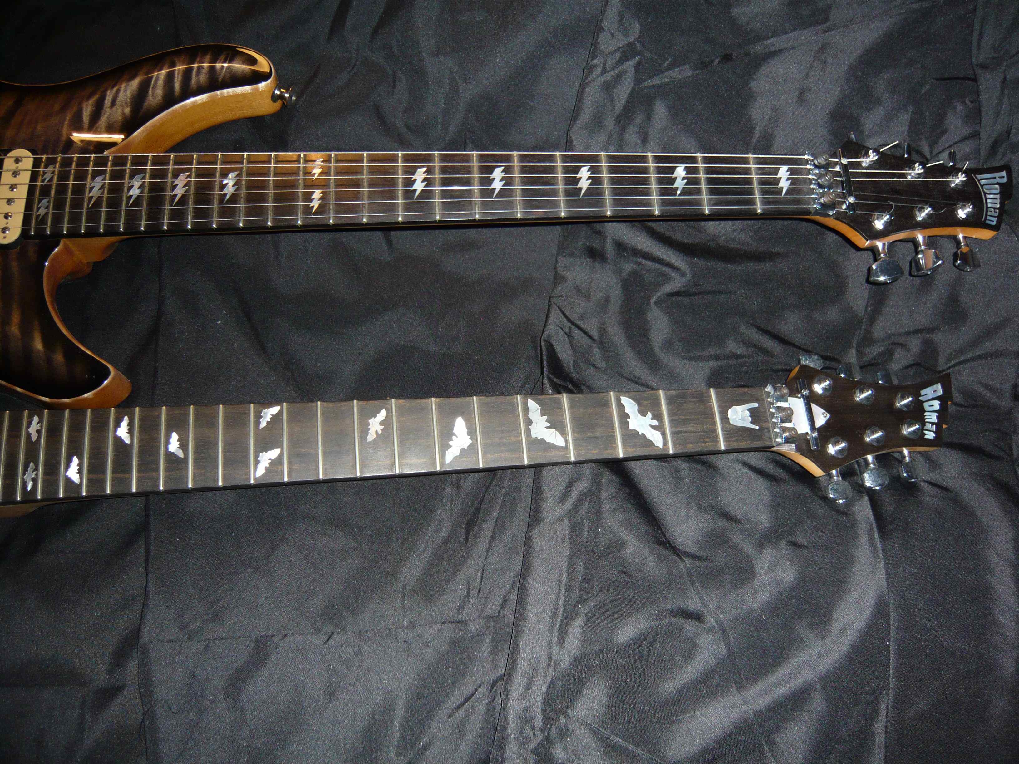 Another guitar that was custom built for Paul Crook by Ed Roman in Las Vegas. This great instrument was prominently used by Paul Crook on the Meat Loaf Tours and can be seen as one of the guitars used for Meat Loafs's Bat out of Hell: Live with the Melbourne Symphony Orchestra concert recorded on 20-22 February, 2004 during the Australian tour. The concert has been issued as a DVD. The guitar was used for the opening song. The neck with the bat inlays was later changed by Paul Crook for another neck configuration.