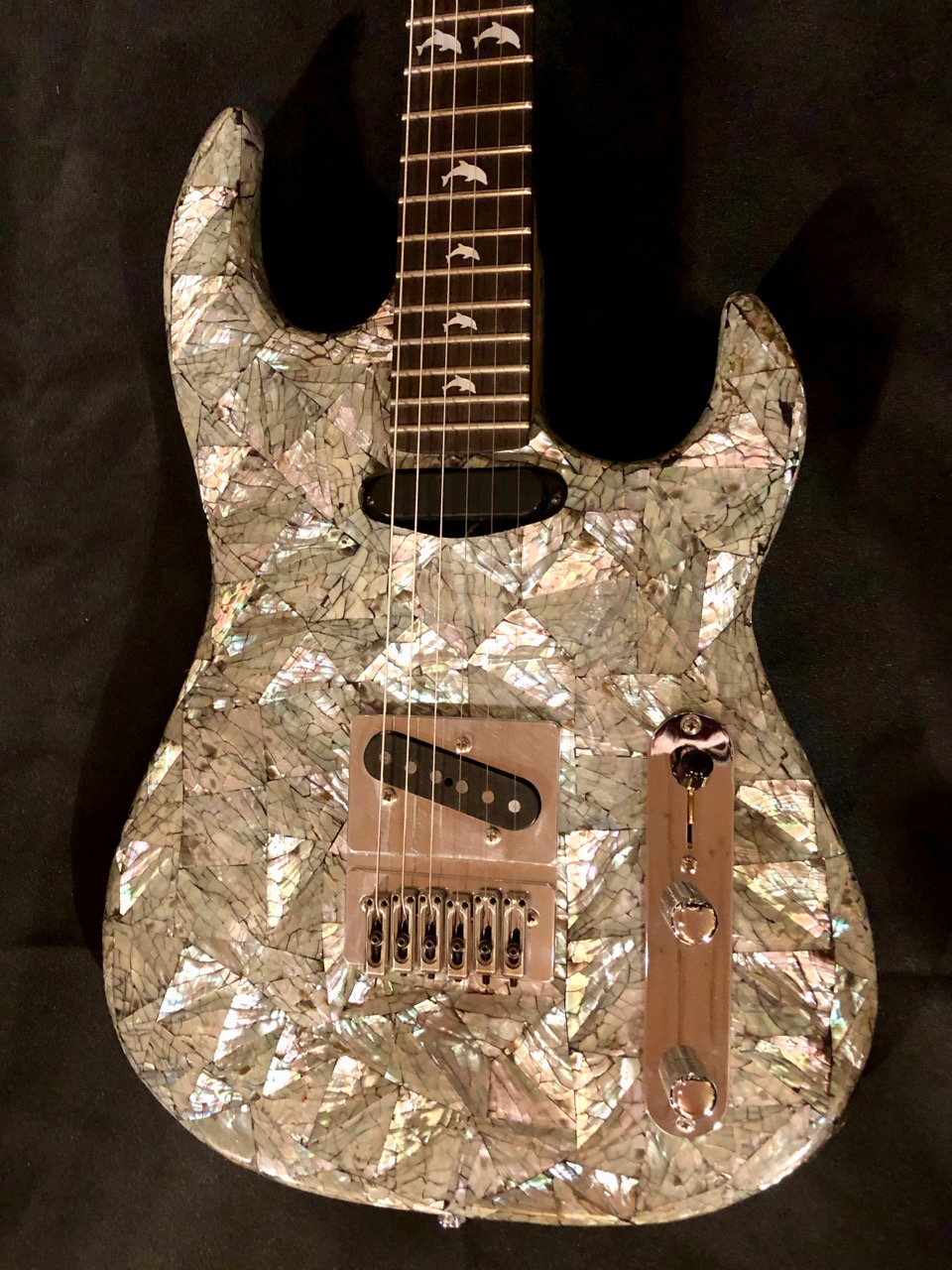 The WRC (Wayne Charvel) 'Neptune' Series had hand cracked abalone custom body finish.
